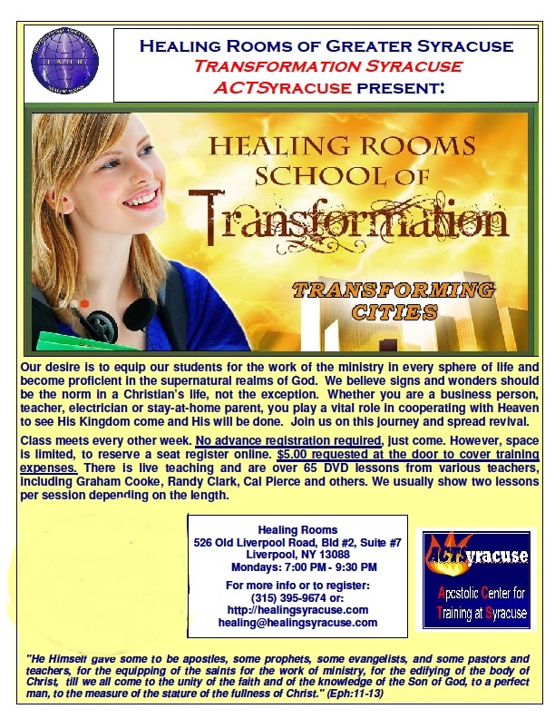 The Healing Room School of Transformation will start in the Fall. Please check back later this summer for updated information.